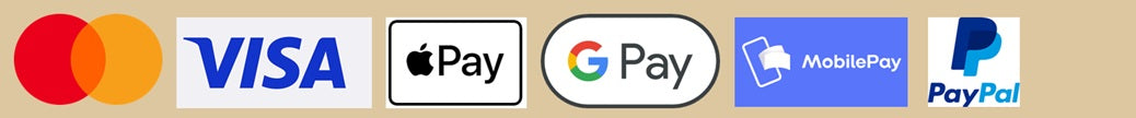 We accept a wide range of payment options including Mastercard, Visa, ApplePay, GooglePay, Mobilepay and PayPal